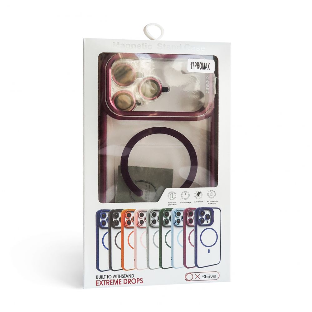 Case with MagSafe for Apple iPhone 17 Pro Max with stand and camera protection bordo (05)