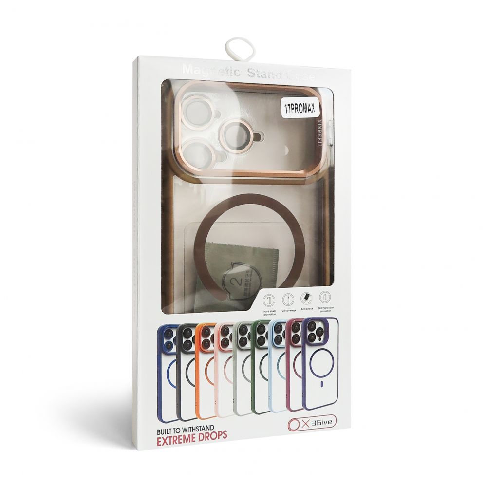 Case with MagSafe for Apple iPhone 17 Pro Max gold with stand and camera protection brown (09)