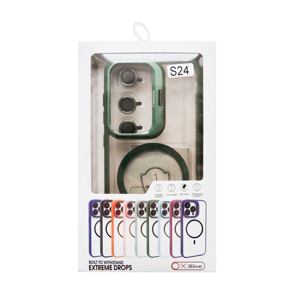 Case with MagSafe for Samsung Galaxy S24/S921 (2024) with stand and camera protection green (01)