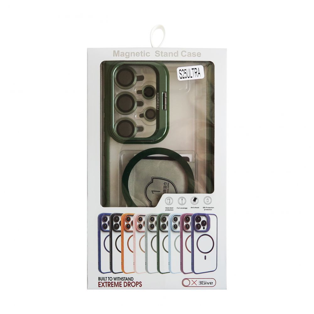 Case with MagSafe for Samsung Galaxy S25 Ultra/S938 (2025) with stand and camera protection green (01)