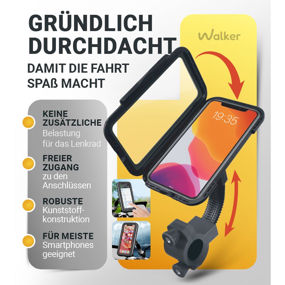 The closed holder case keeps your smartphone dry in bad weather. It protects against splashes, dust, and moderate rain.