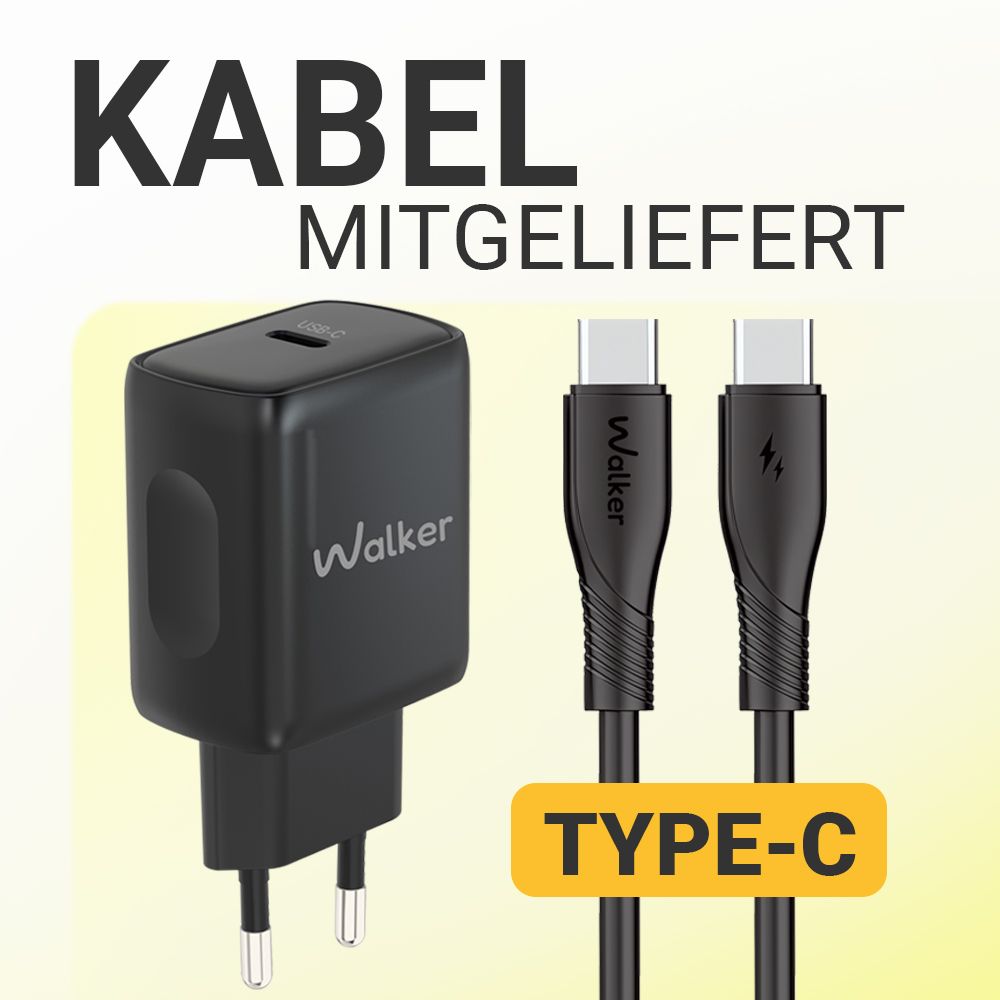 Network Charger (Adapter) 2in1 WALKER WH-64 PD_25W + Data Cable Type-C to Type-C black