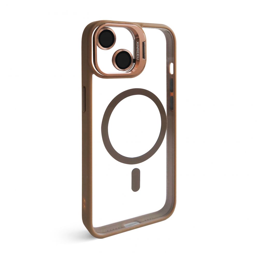 Coque avec MagSafe pour Apple iPhone 13 avec support et protection pour les caméras brun d'or (09)