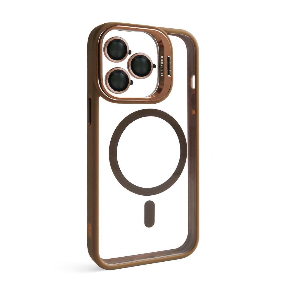 Coque avec MagSafe pour Apple iPhone 13 Pro Max avec support et protection pour les caméras brun d'or (09)