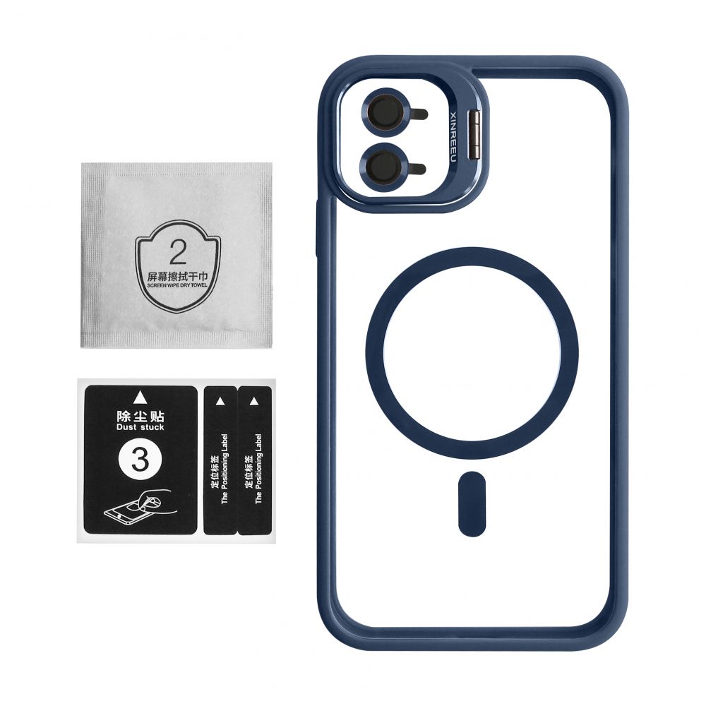 Coque avec MagSafe pour Apple iPhone 11 avec support et protection pour les caméras bleu foncé (04)