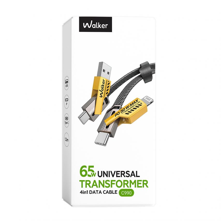 Câble USB WALKER C990 4en1 65W USB+Type-C Type-C + Lightning transformateur noir/jaune