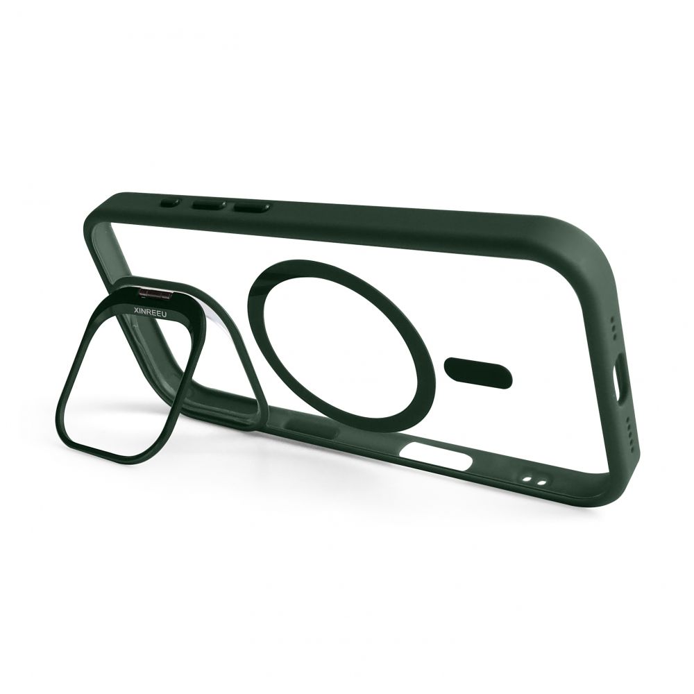 Hülle mit MagSafe für Apple iPhone 16 mit Ständer und Kameraschutz green (01)