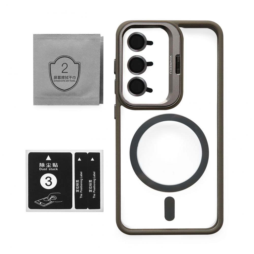 Hülle mit MagSafe für Samsung Galaxy S24/S921 (2024) mit Ständer und Kameraschutz light grey (06)