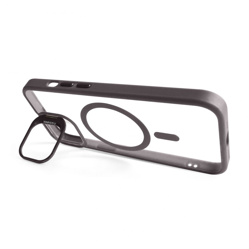 Hülle mit MagSafe für Apple iPhone 12 mit Ständer und Kameraschutz light grey (06)