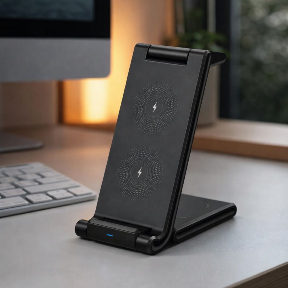 Aufgeklappt wird das Smartphone in einem Winkel positioniert – bequem für Videos, Anrufe und das Lesen von Nachrichten während des Ladevorgangs.