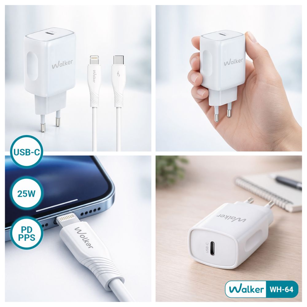 Netzladegerät (Adapter) 2in1 WALKER WH-64 PD_25W + Data Cable Type-C to Lightning weiß