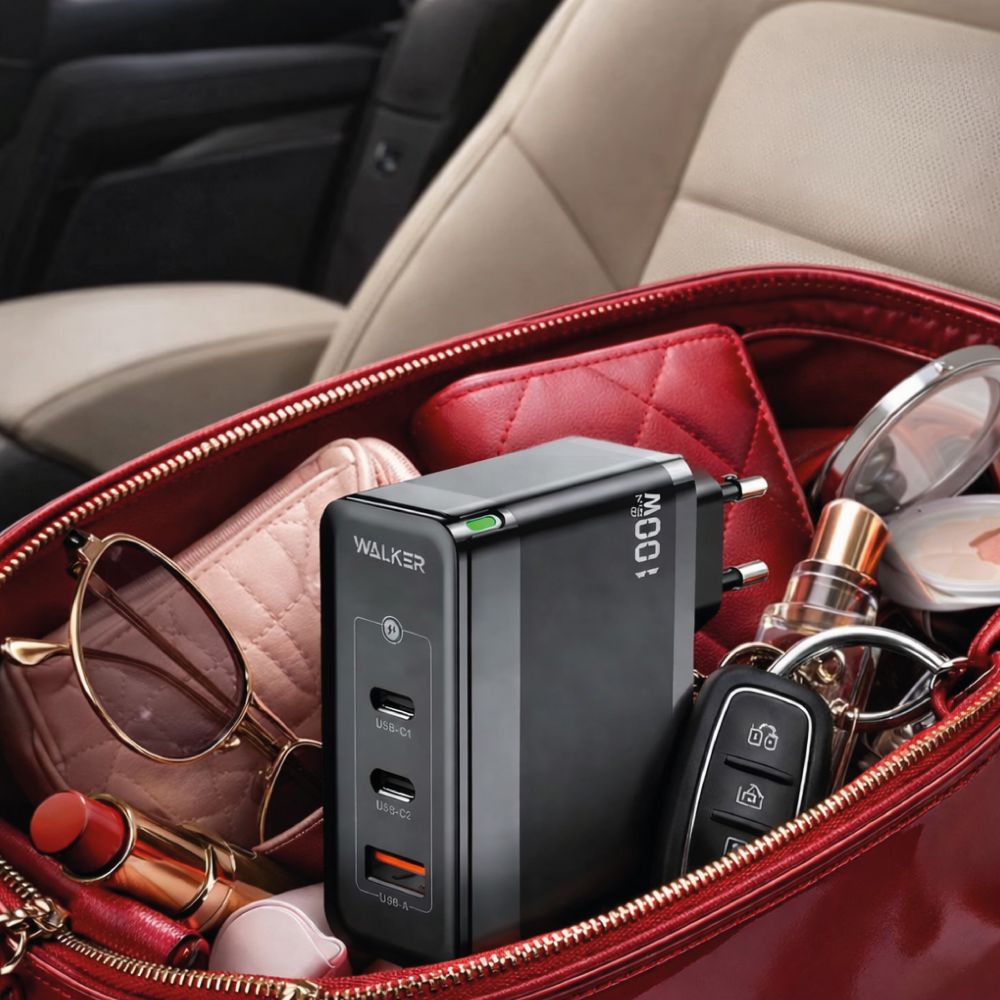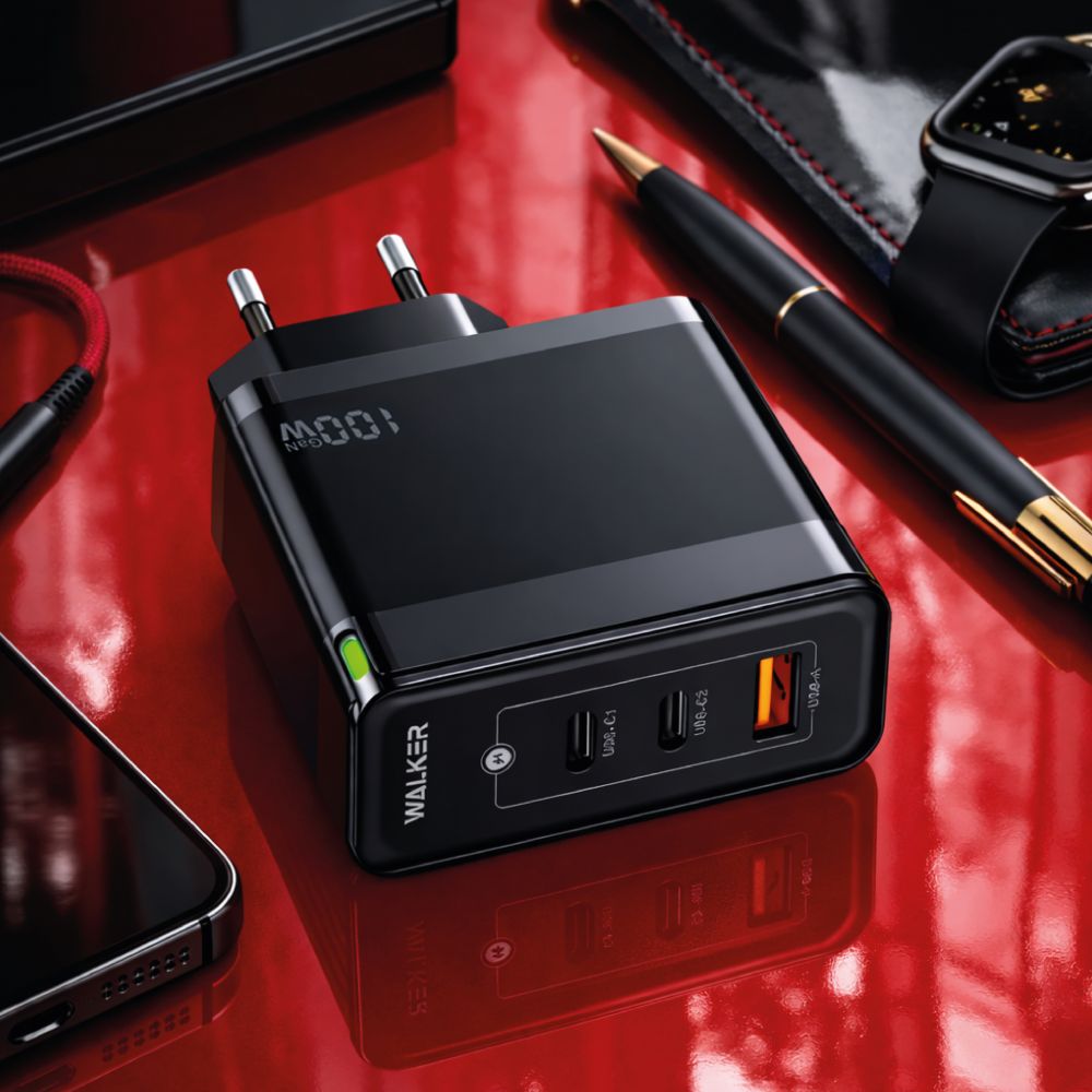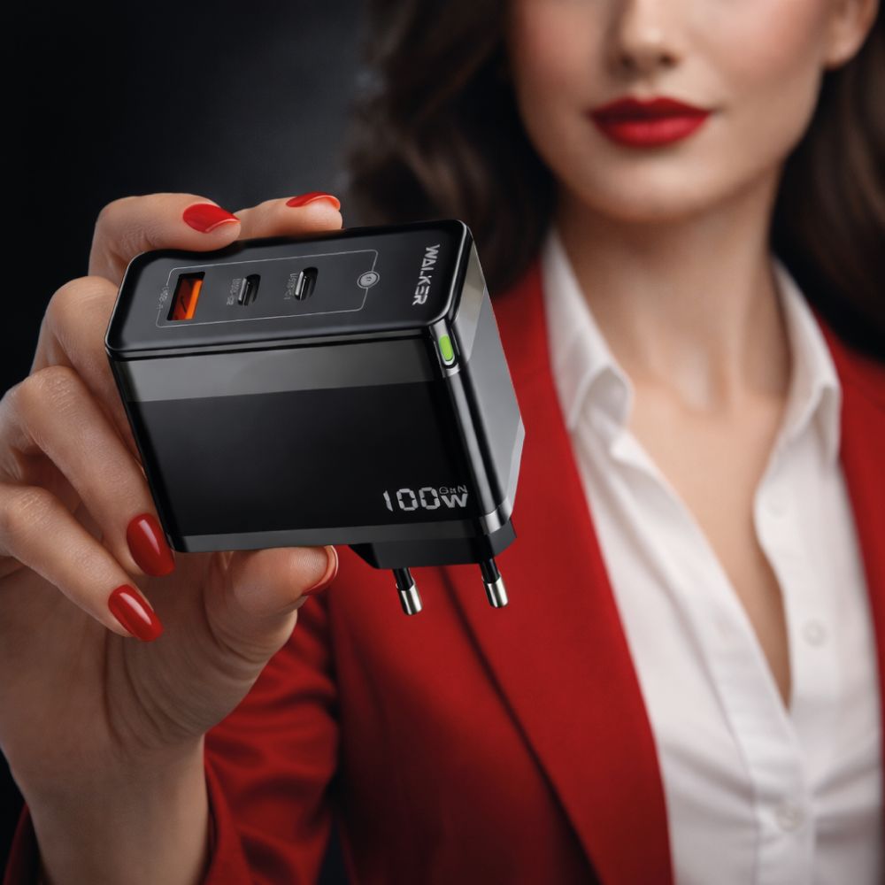 Netzladegerät (Adapter) WALKER WH-47 100W GaN PD1_65W / PD2_35W / QC3.0_18W schwarz